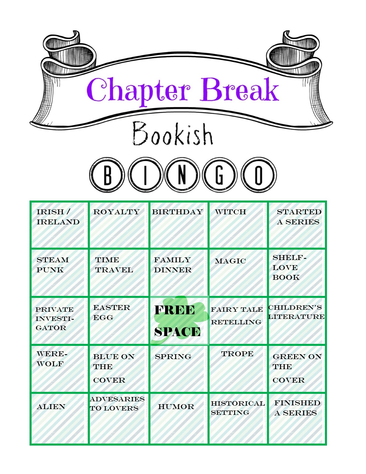 Each month we will upload a new bingo card. You download the bingo card and mark off squares as you read books each month. At the end of the month, we will post our own bingo cards. Link up your post or post your own bingo card in the comments.