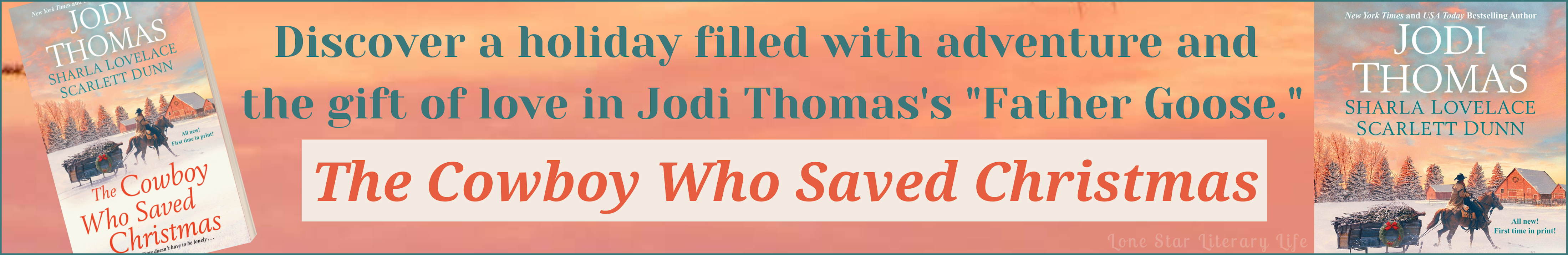 Legendary author Jodi Thomas headlines a new holiday-themed Western historical romance collection featuring three Texas-set stories of romance and adventure.