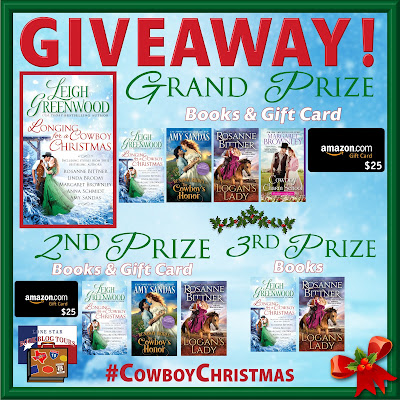 I received Longing for a Cowboy Christmas free in exchange for my honest review. Thanks to authors Leigh Greenwood, Rosanne Bittner, Linda Broday, Margaret Brownley, Anna Schmidt, Amy Sandas, and Lone Star Book Blog Tours for providing this opportunity.